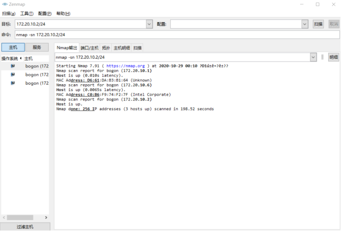 请查询本机的IP地址和子网掩码,并在局域网中扫描本网段内的所有存活主机(附截图)