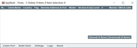 一、攻击者打开spynote软件,该软件需要先安装.netframework4.0和jdk环境。