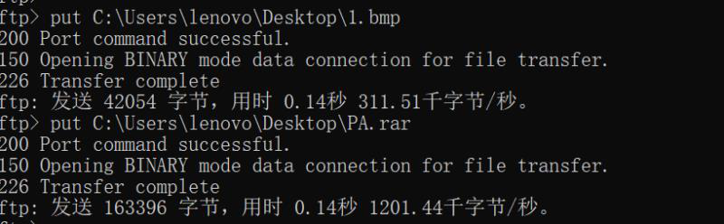 3.B同学在机器中安装Wireshark,并将其打开;之后用用户名和密码登陆A同学的FTP服务器,并上传一张图片和一个压缩包。