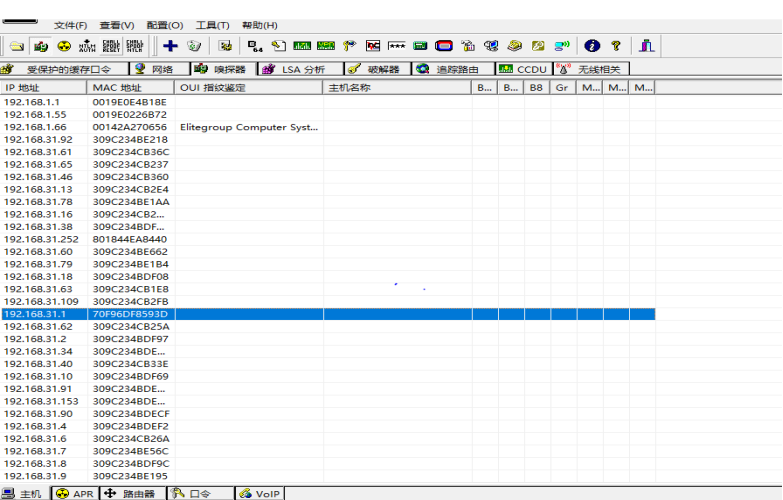 如下图所示,利用CAIN软件对本主机所在网段进行查询,如下图。图中192.168.31.1为本网段的网关