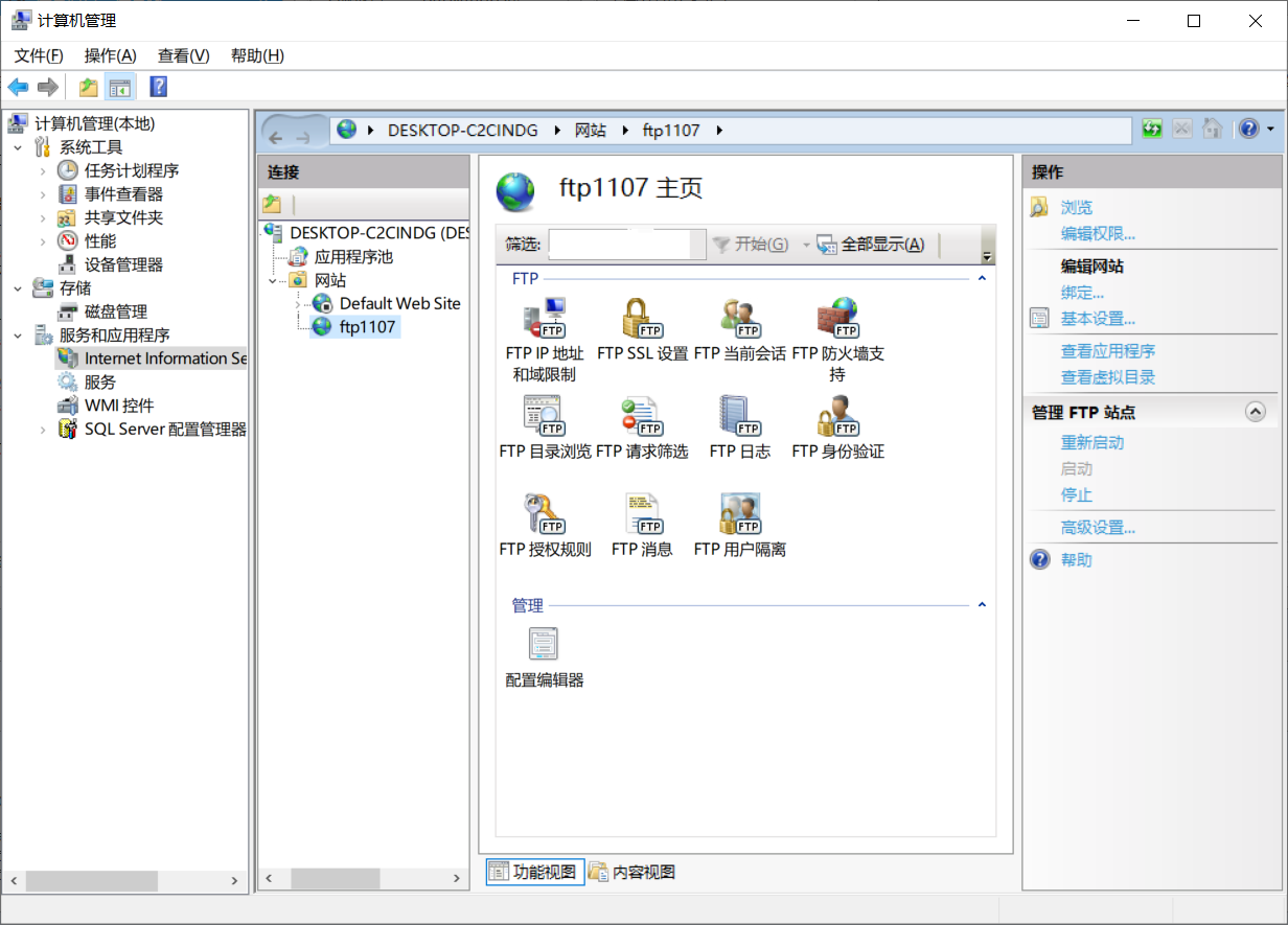之后,创建FTP服务器以及相应的密码,如下图ftp1107为所创建的FTP服务器站点