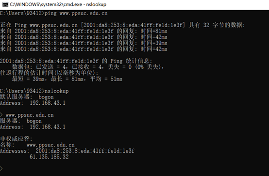 2.A同学正常访问网站www.ppsuc.edu.cn
