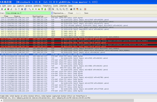 - A同学构建FTP服务器,C使用wireshark抓包,观察,
