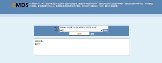 请解密以下字符串35556C826BF3ADDFA2BB0F86E0819A6C。(附截图)