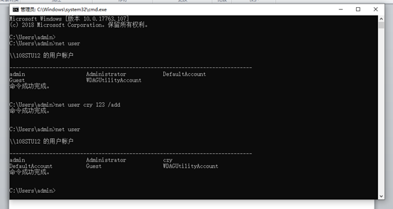- 在windows xp系统中使用 net user gao gao123 /add添加用户gao,密码gao123的账户(用户名和密码可以自己设定);并使用net user命令确定用户添加成功。