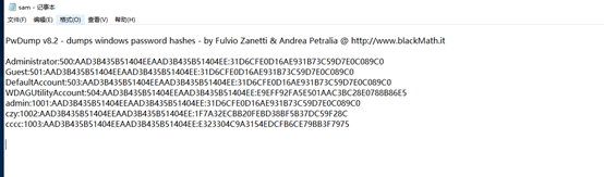 sam文件中的新添加账户及其密码的加密后的字符串