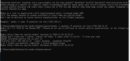 2.B同学使用hydra 对ftp用户的密码进行字典破解。hydra 中有关于该软件的使用命令语法。字典文件需要自己去生成。