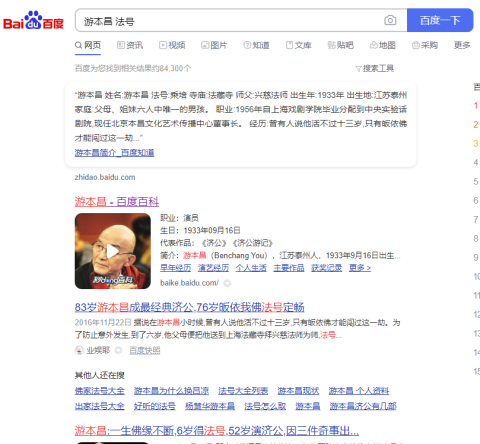再后,搜索 “游本昌 法号”