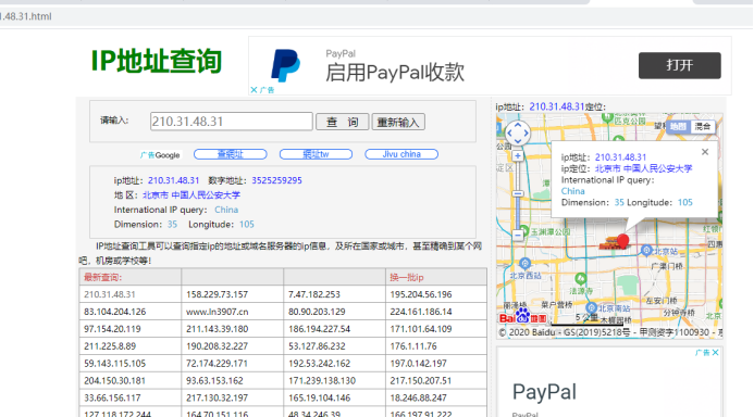 通过ip地址搜寻得知是中国人民公安大学的地址。