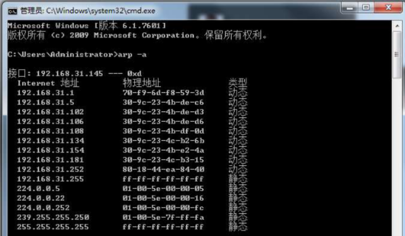 ARP欺骗前192.168.31.145机正常缓存表