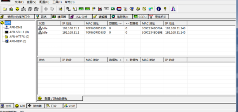 4、点击工具栏第三个图标(start ARP)就可以ARP欺骗了