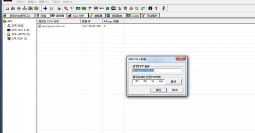 3.B同学扮演攻击者,设计攻击方法,使用CAIN,通过DNS欺骗的方式,让A同学访问www.ppsuc.edu.cn网址的时候,访问到另外一台机器上的伪造网站