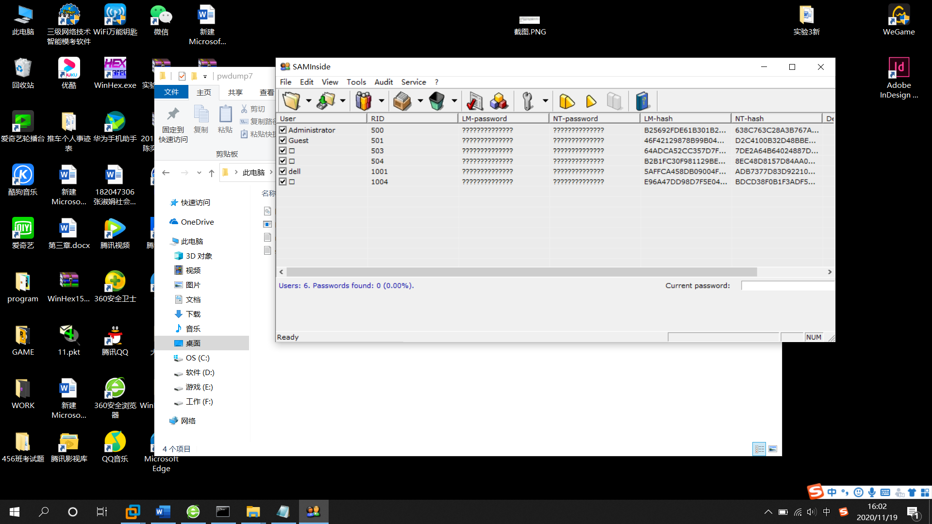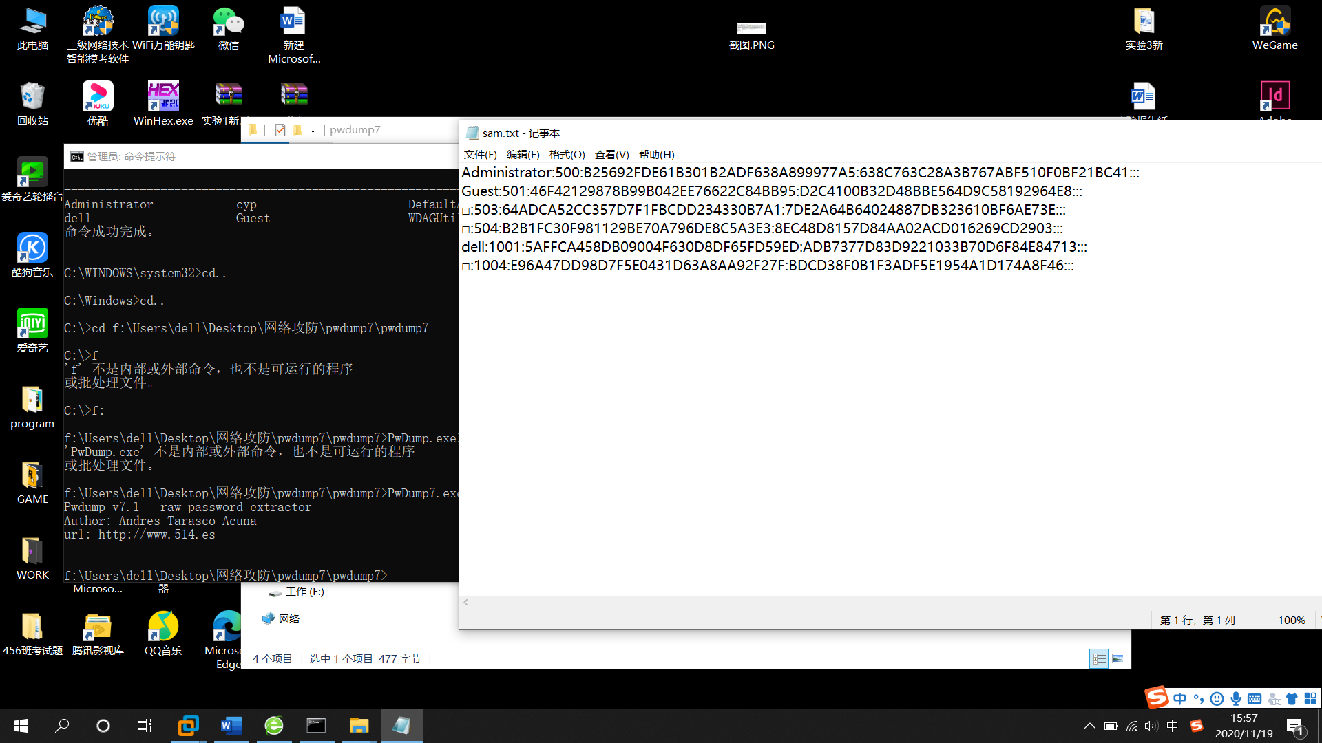 2.使用pwdump软件导出本机的sam文件