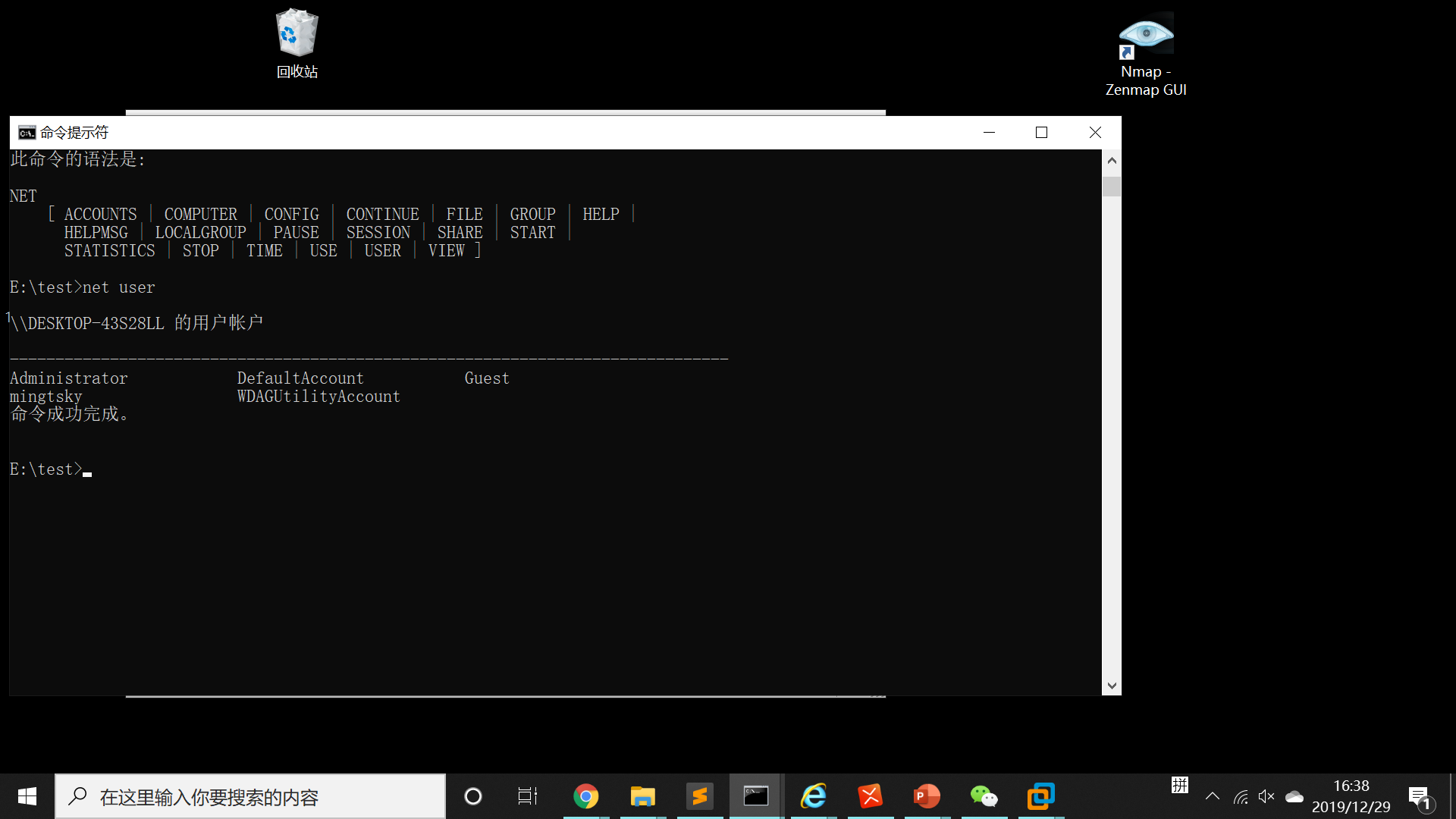 在shell中,利用net user 用户名 密码 /add ,添加一个用户,并在受害者的机器中使用 net user 命令进行验证。(需要截图)
