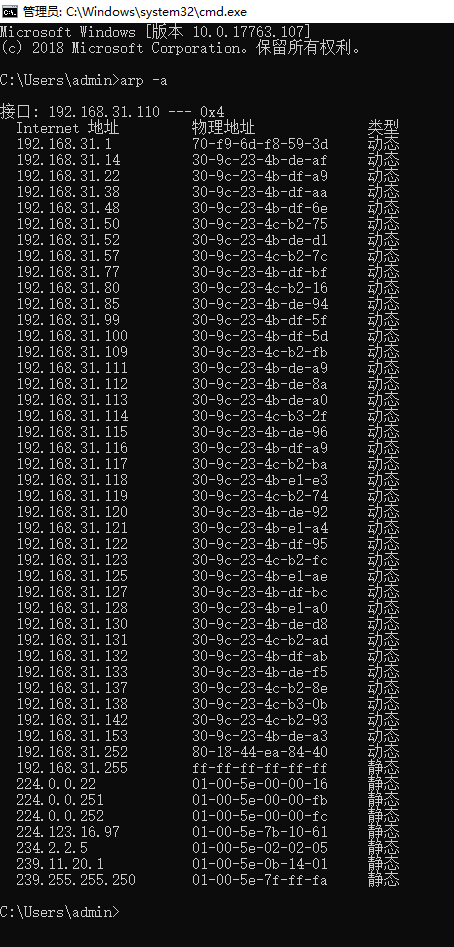 2.欺骗攻击前后,通过Arp-a命令验证欺骗是否成功(附截图)