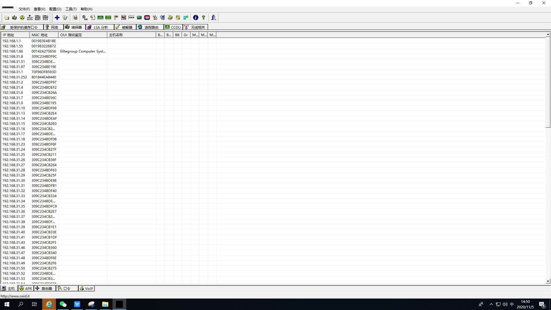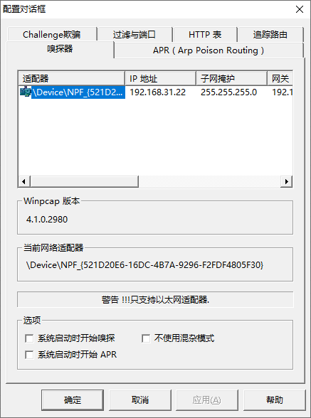 2、在192.168.31.110号机器上运行cain,选择要嗅探的网卡(单网卡,默认就可以)