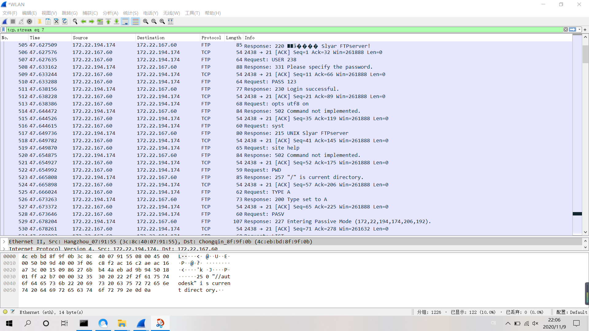 4.欺骗过程中,在主机C开启Wireshark进行抓包,分析FTP协议的登录过程(附流程图)