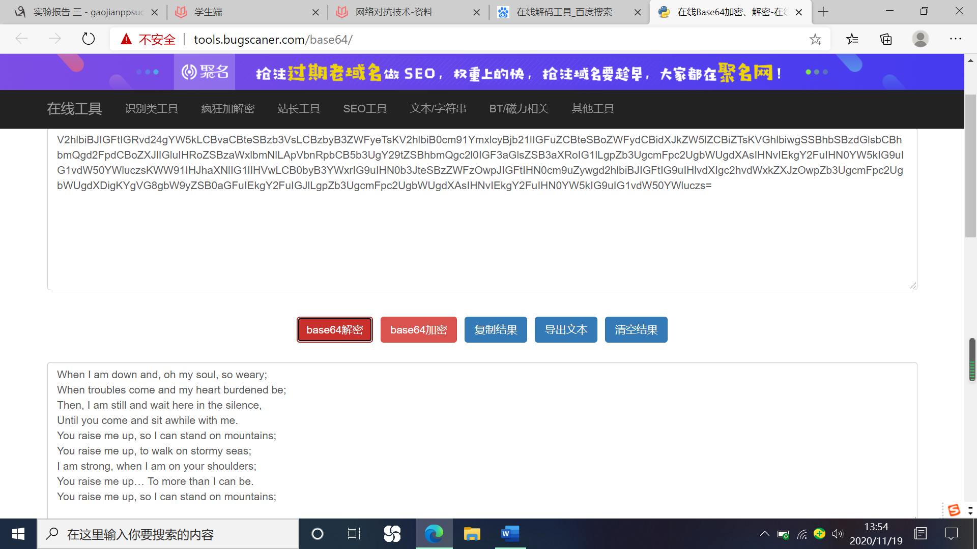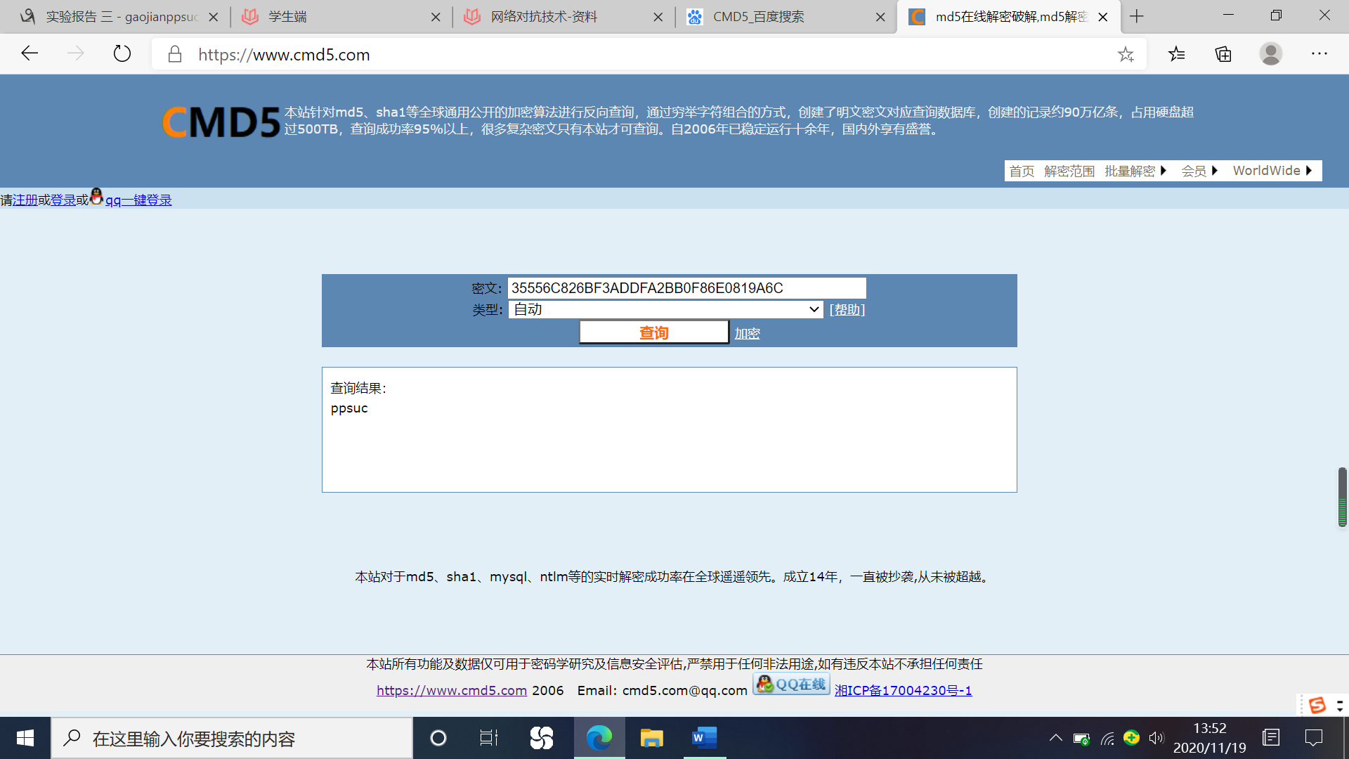 1. 请解密以下字符串35556C826BF3ADDFA2BB0F86E0819A6C。(附截图)