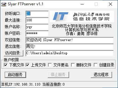 两个同学配合完成,A同学搭建FTP服务器,并新建用户,并设置登陆密码