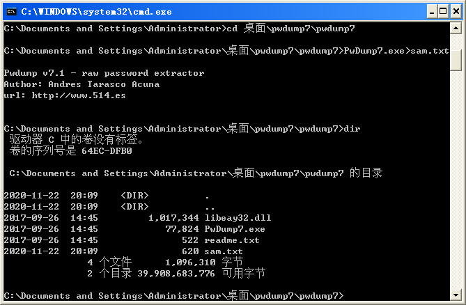 如果遇到复杂密码的LM值破解时间长,可以使用在线破解的方式。