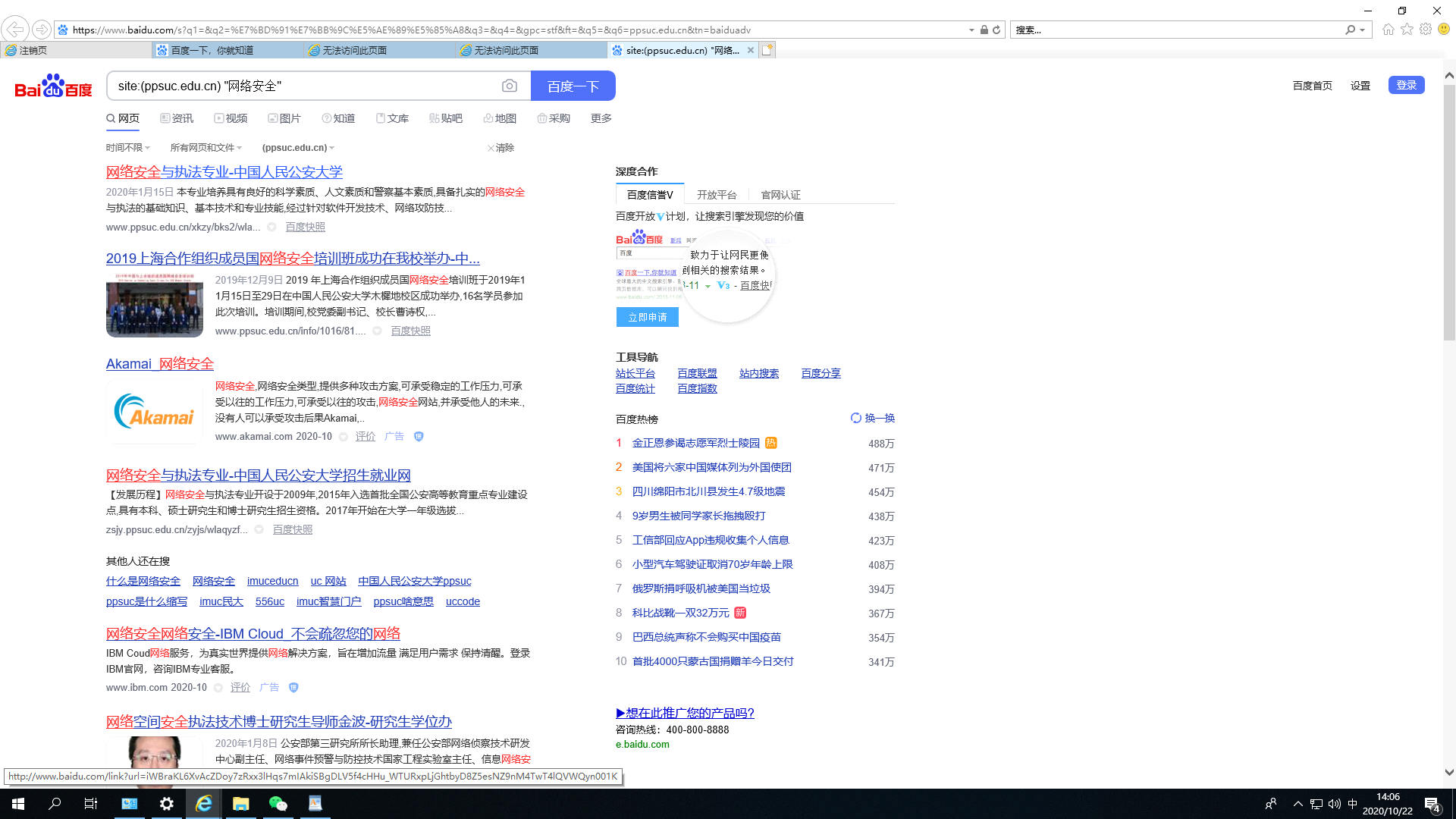 用百度或google搜索www.ppsuc.edu.cn中所有包含“网络安全”的网页。(附截图)