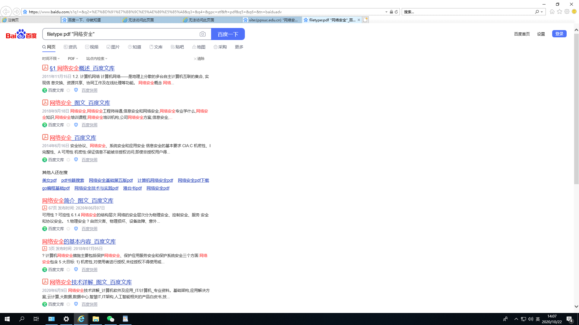 用百度或google搜索所有包含“网络安全”的pdf文档(附截图)
