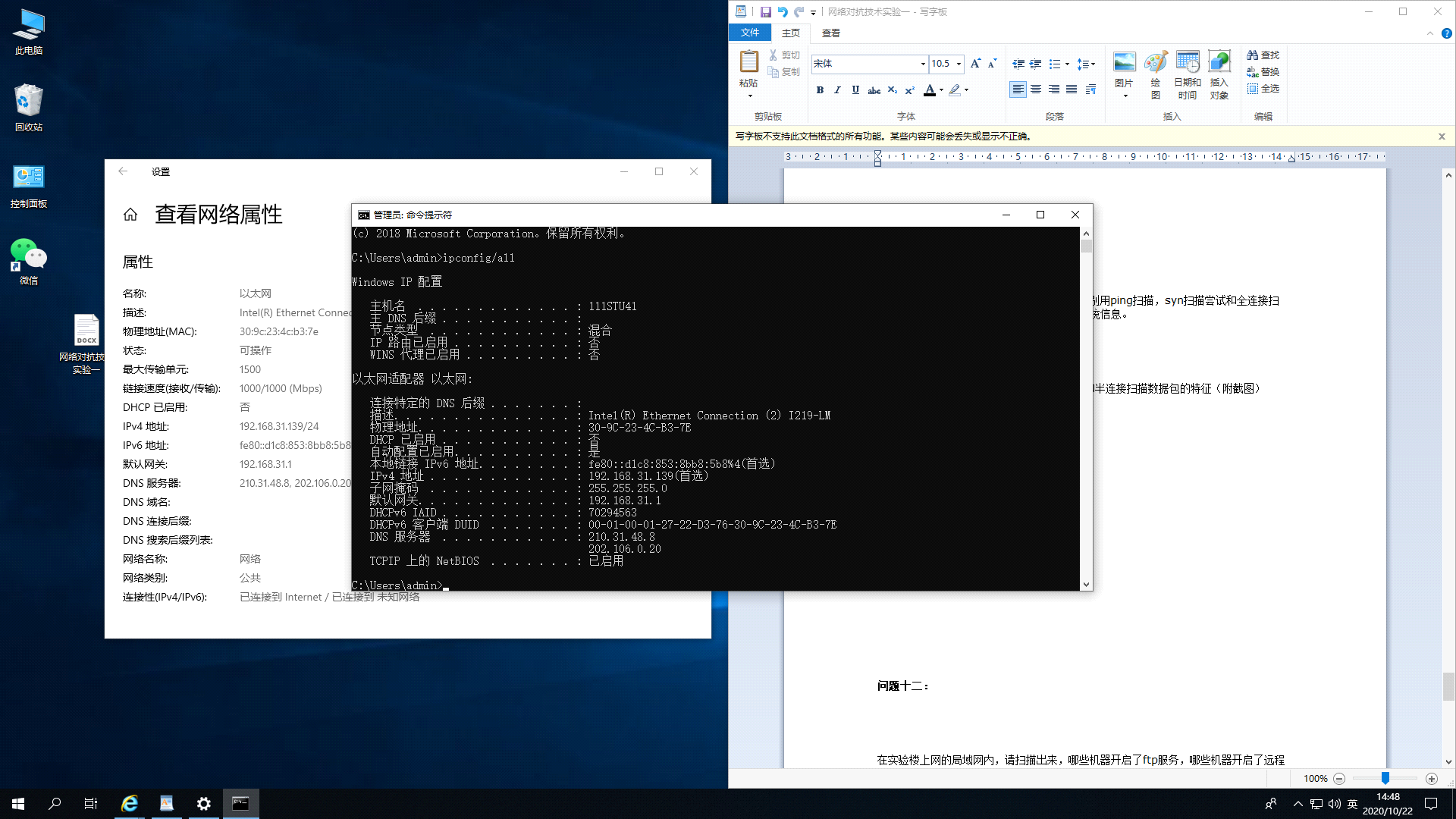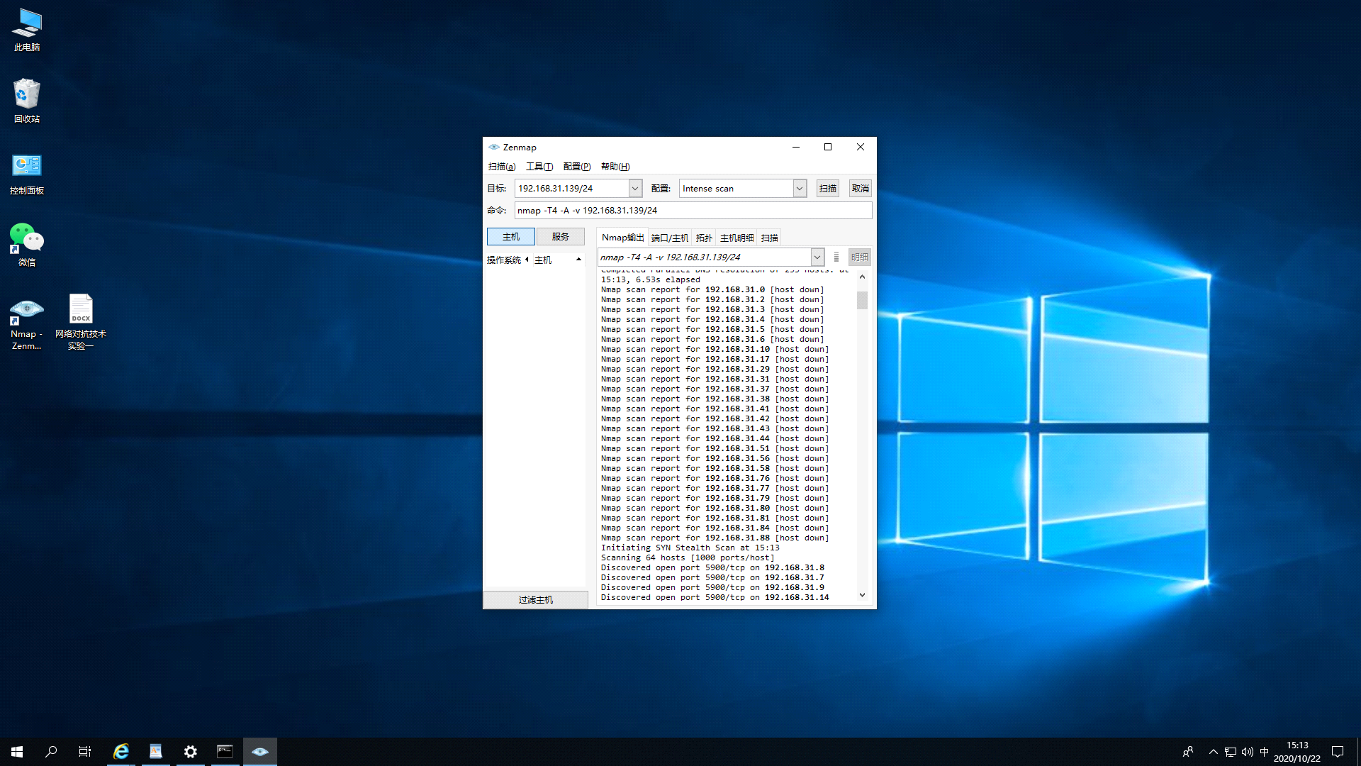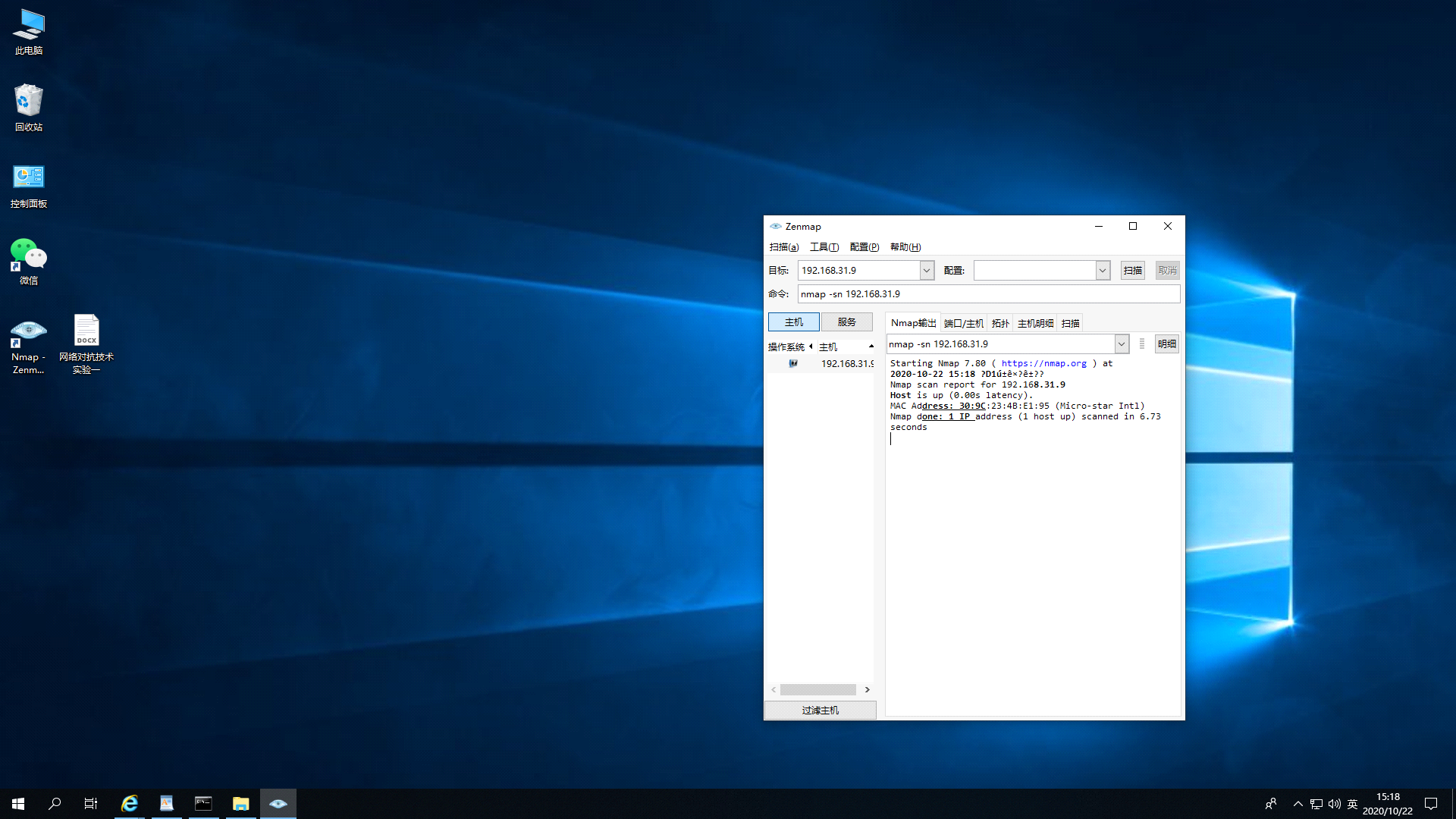 请查询本机的IP地址和子网掩码,并在局域网中扫描本网段内的所有存活主机(附截图)