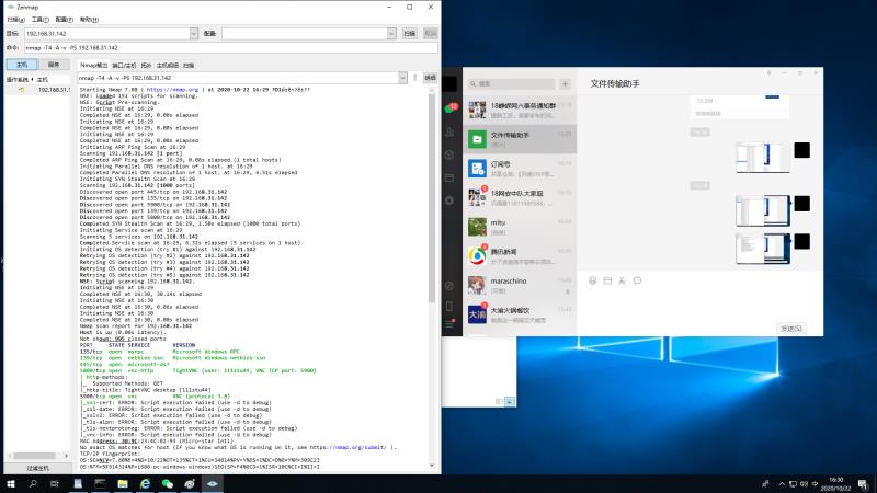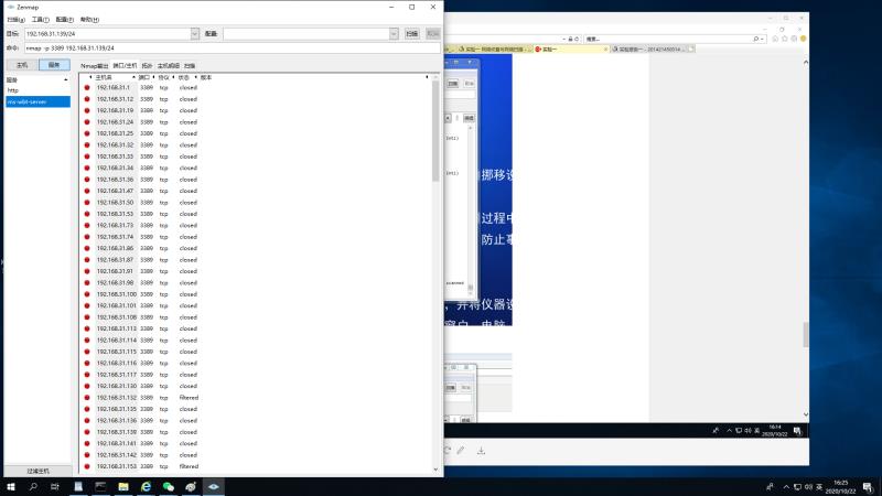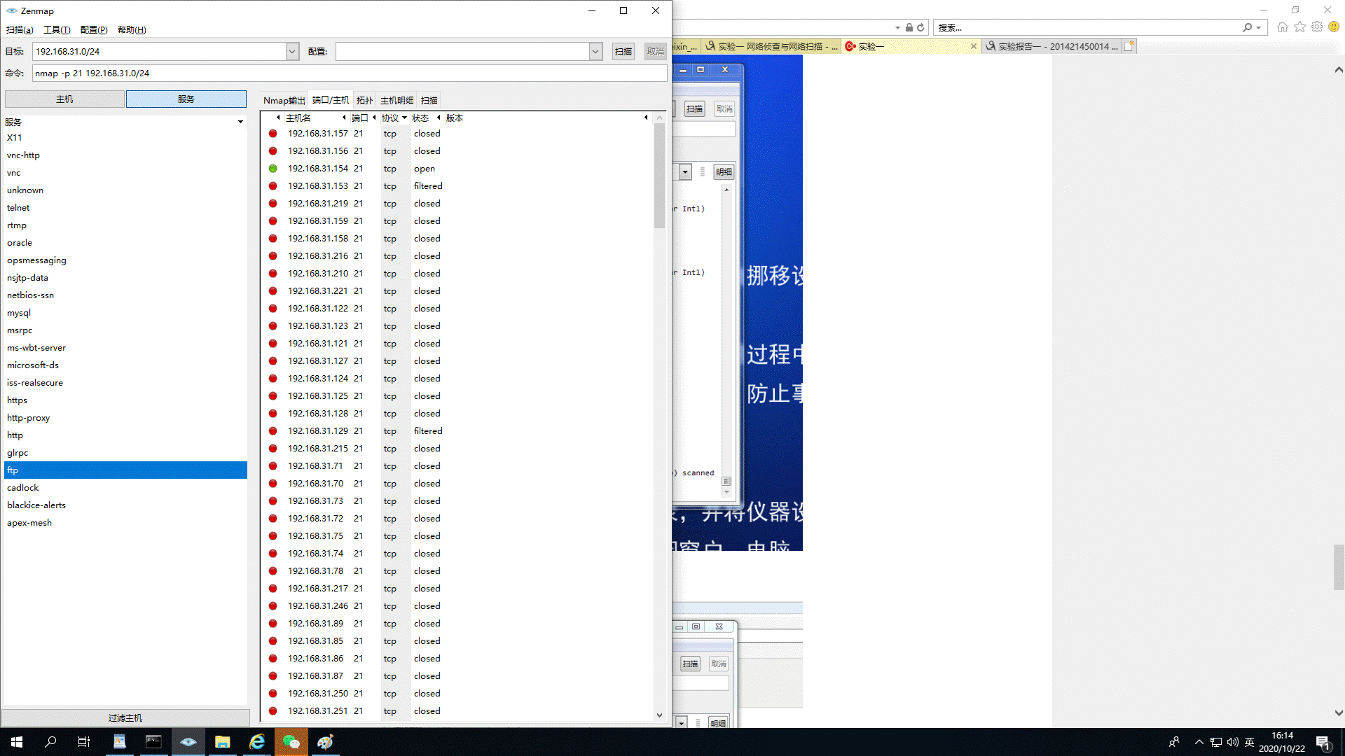 在实验楼上网的局域网内,请扫描出来,哪些机器开启了ftp服务,哪些机器开启了远程桌面连接服务,并附截图证明。