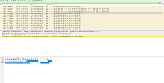 4.在被攻击主机192.168.31.118上使用wireshark抓包,捕获到如下数据包: