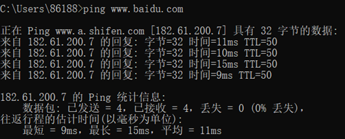 欺骗成功后,在被害机器上再ping www.baidu.com,发现已经被解析到了指定的IP地址上。