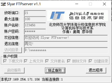 2.A同学架设FTP服务器,并设置用户名和密码,例如gao / gao