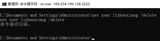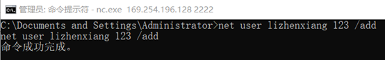 在shell中,利用net user 用户名 密码 /add ,添加一个用户,并在受害者的机器中使用 net user 命令进行验证。