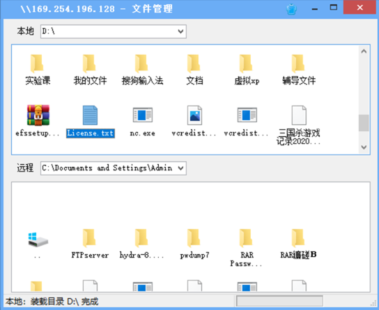 如图,将攻击者d盘中铭文License.txt的文本文档拷贝到受害主机桌面。