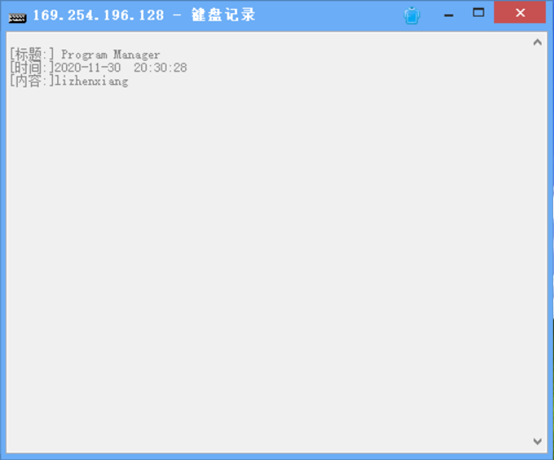 在受害主机上将拷贝的txt 文档重命名为“lizhenxiang”,查看到击键记录。
