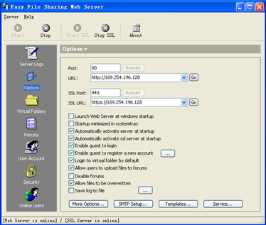 1.在主机A上搭建easyfile,安装文件为efssetup