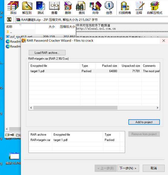 使用Rar crack软件破解,给出的RAR target文件的密码,并查看压缩包中的内容