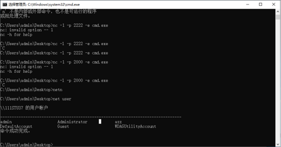在shell中,利用net user 用户名 密码 /add ,添加一个用户,并在受害者的机器中使用 net user 命令进行验证。(需要截图)