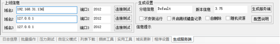 点击菜单栏中的“服务生成”,在弹出的配置服务端中,配置回连IP地址(攻击者IP)和端口号,并点击“生成”按钮,生成木马服务端。