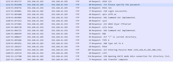 欺骗过程中,在主机C开启Wireshark进行抓包,分析FTP协议的登录过程(附流程图)