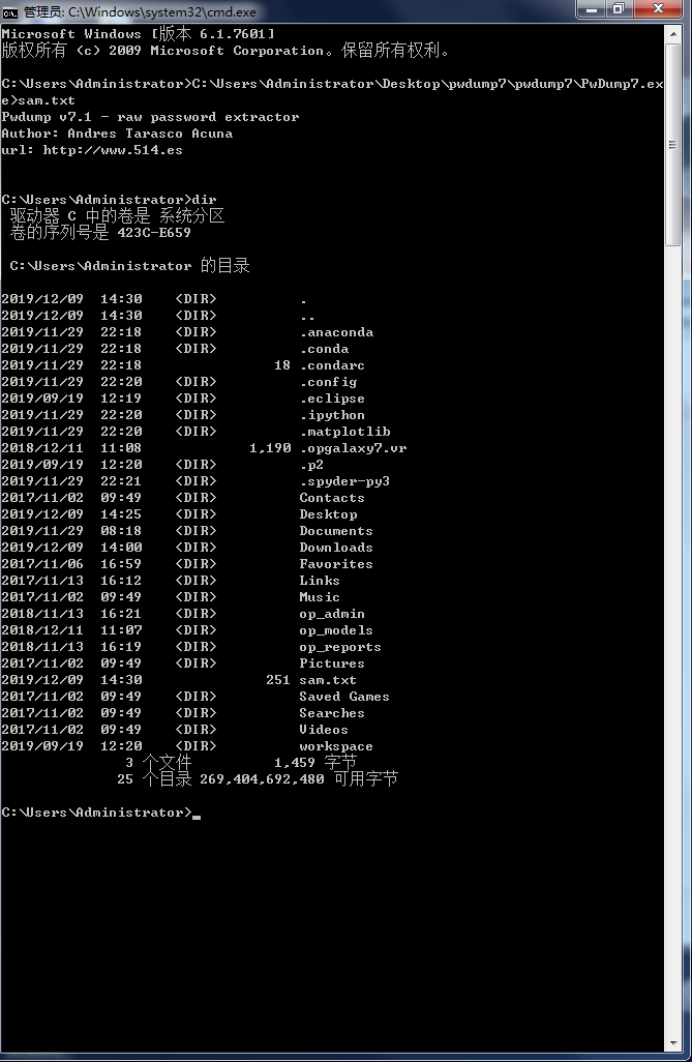 2.使用pwdump软件导出本机的sam文件