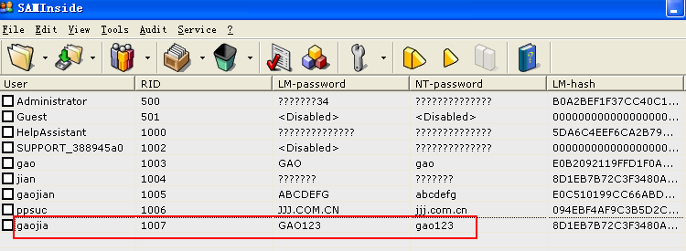 sam文件中的新添加账户及其密码的加密后的字符串