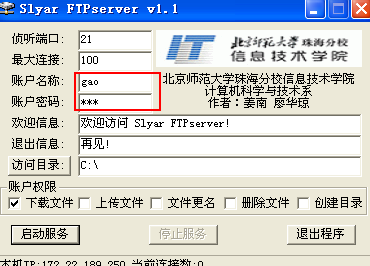 两个同学配合完成,A同学搭建FTP服务器,并新建用户,并设置登陆密码