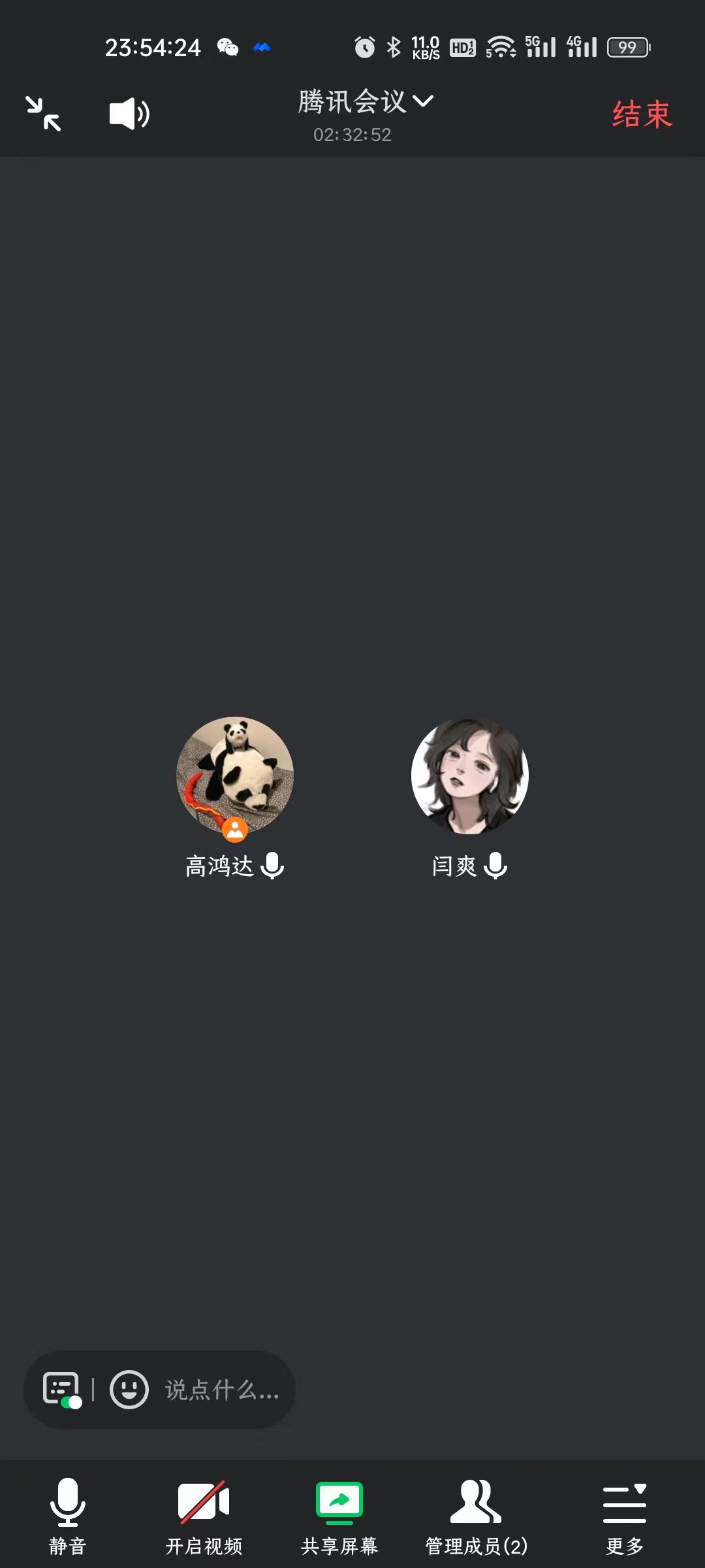 观影过程非常顺利,腾讯会议环境不错,听得妹妹那边一片叽叽喳喳的声音,虽然有点吵(还是忍着一点了,不过ys这个家伙竟然嫌我说话吵,伤心了,退网!)