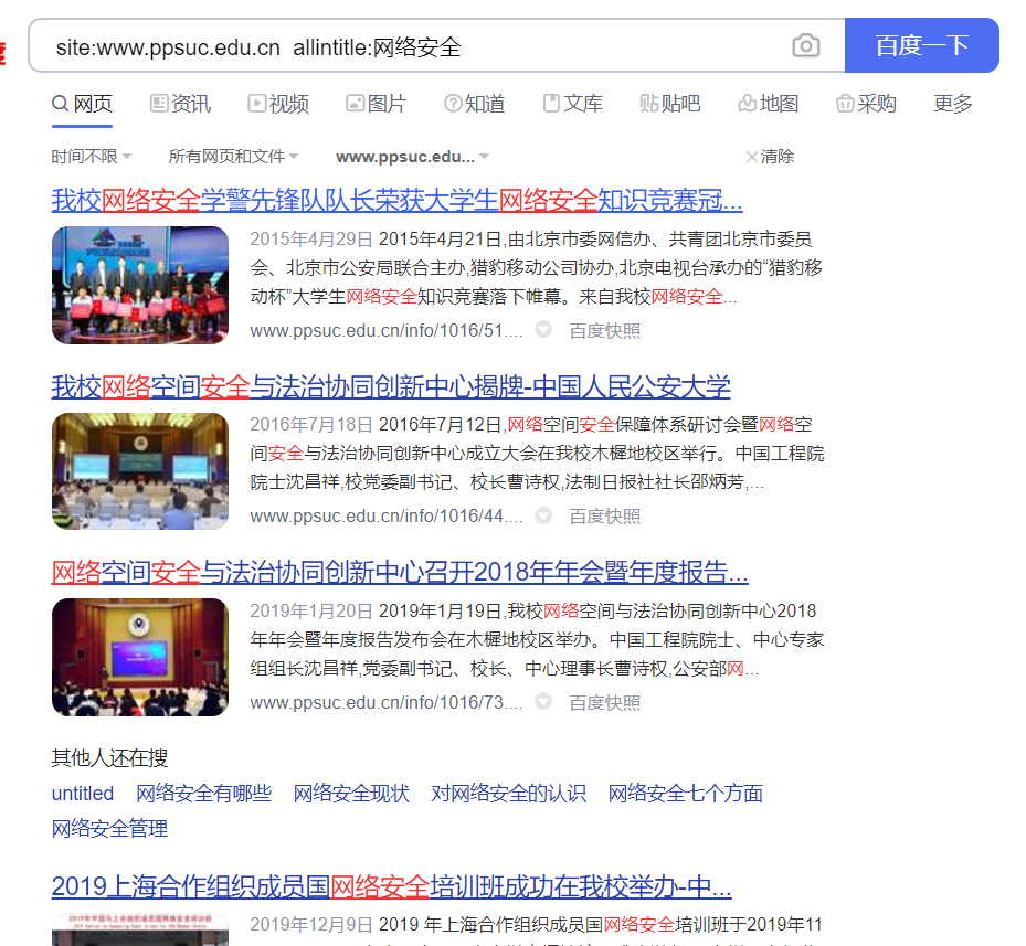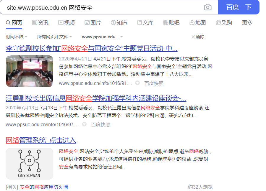 如果使用site:www.ppsuc.edu.cn 网络安全 则只能返回网络安全四个字连在一起的网页